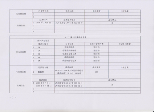 2016年第二季度环境信息公开