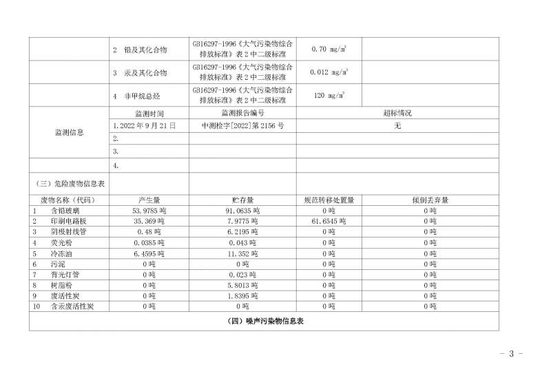2022年第四季度环境信息公开表