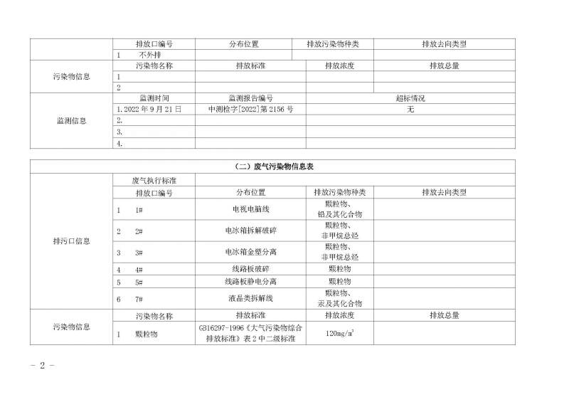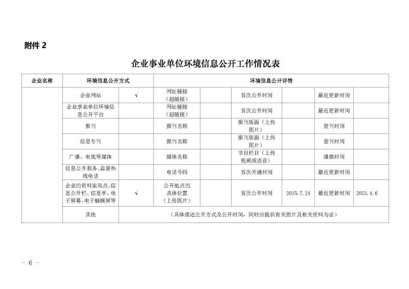 2023年第二季度环境信息公开表