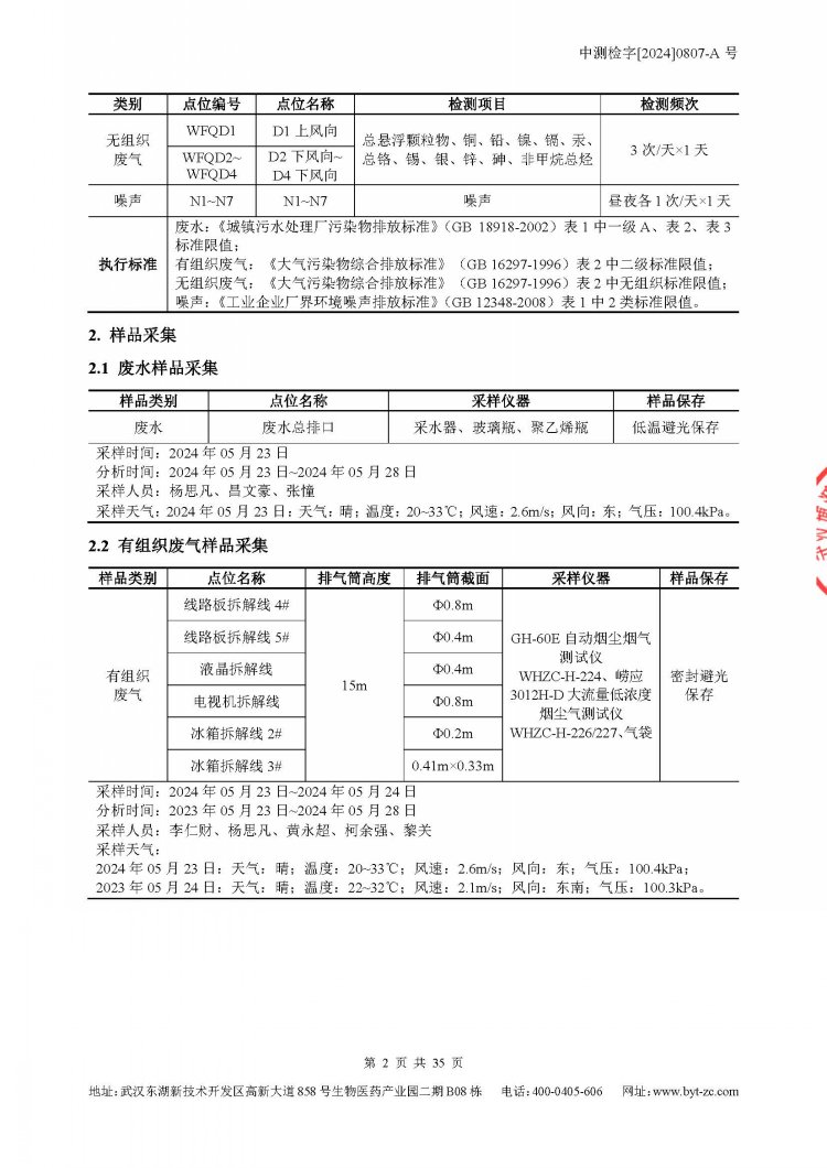 2024年第二季度的环境信息公开表